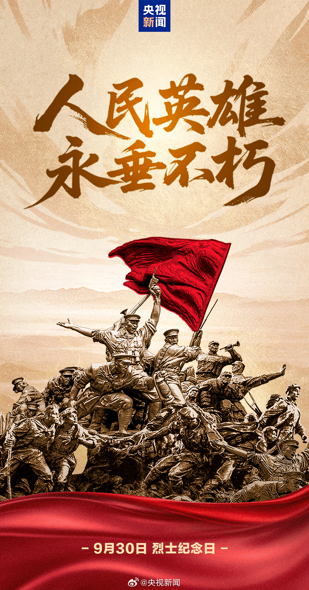 一个有希望的民族不能没有英雄,一个有前途的国家不能没有先锋。今天,是国家设立的烈士纪念日。烈士,是永不陨落的星辰,是永不熄灭的火炬!一起致敬烈士!